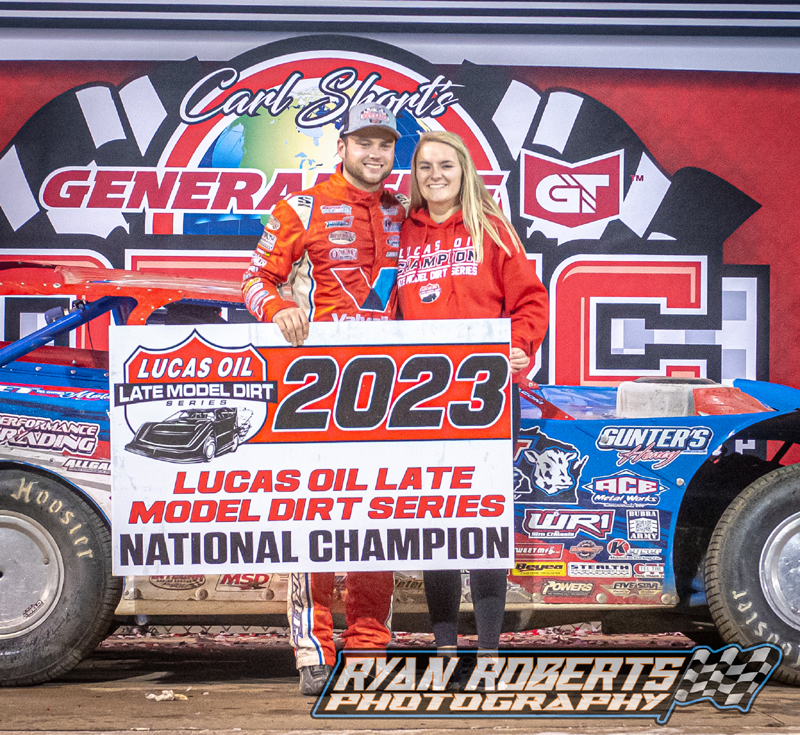 Hudson O'Neal and girlfriend Tessa celebrate a 2023 Lucas Oil Late Model Dirt Series Championship! - Ryan Roberts Photography